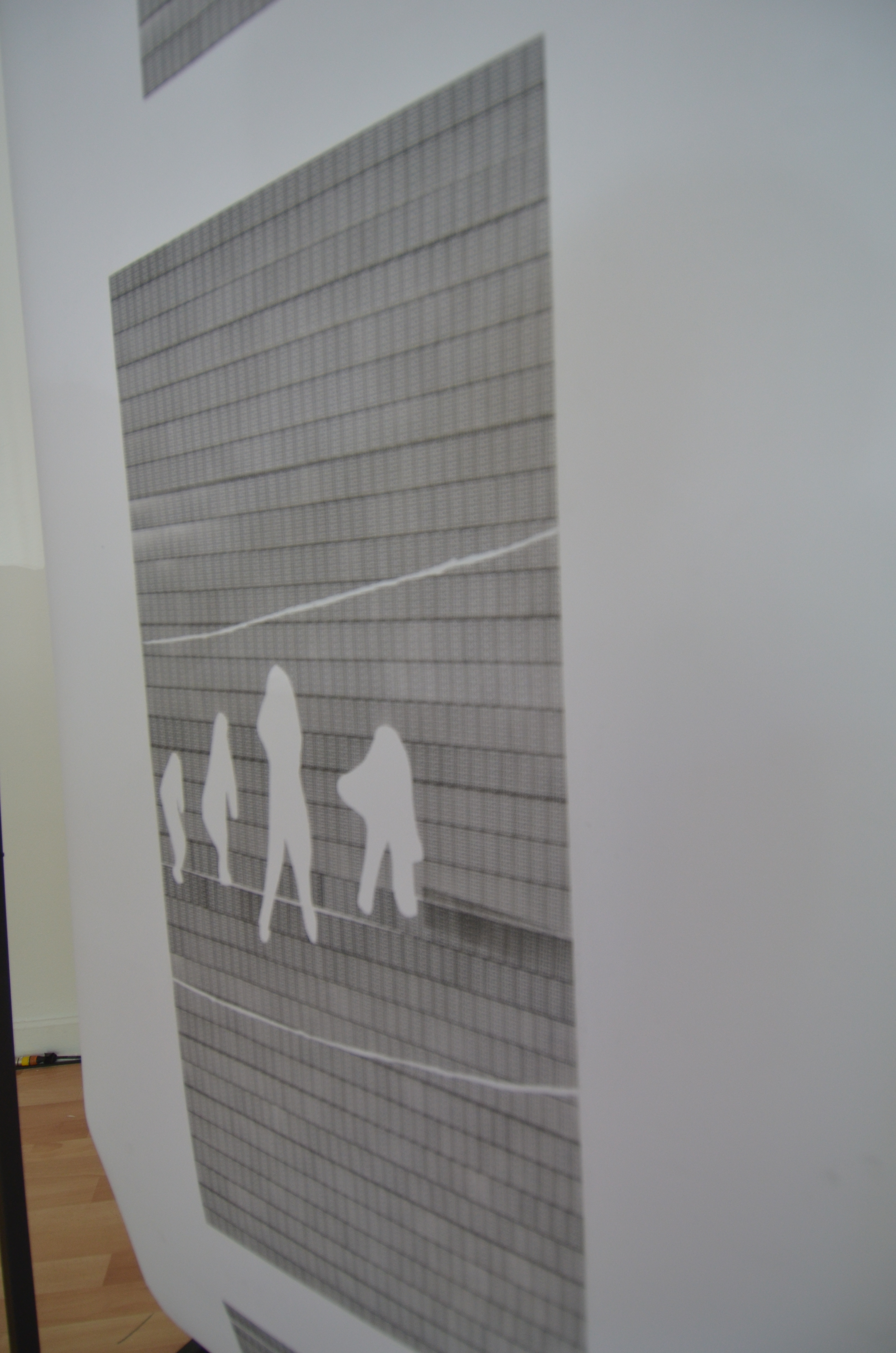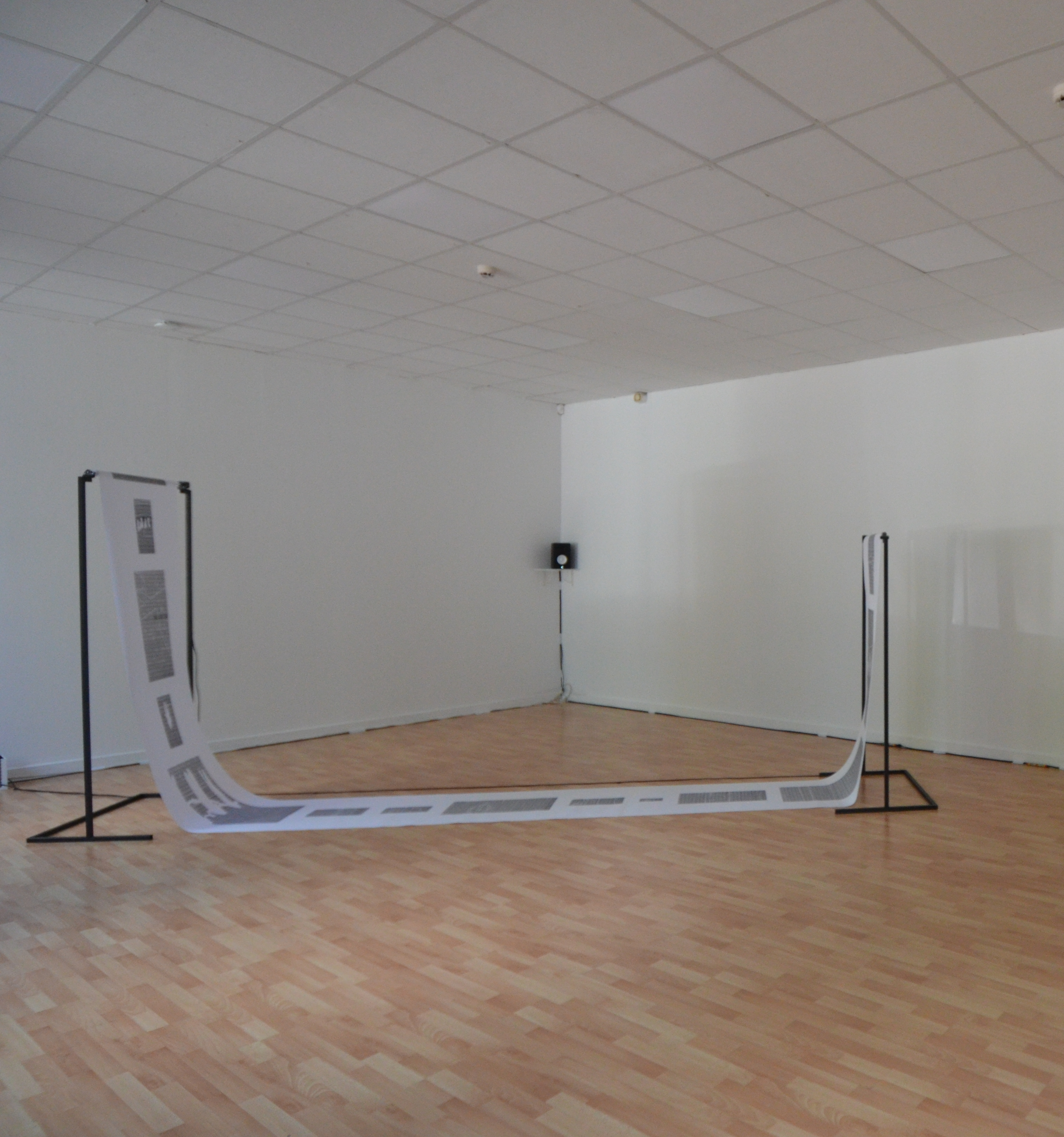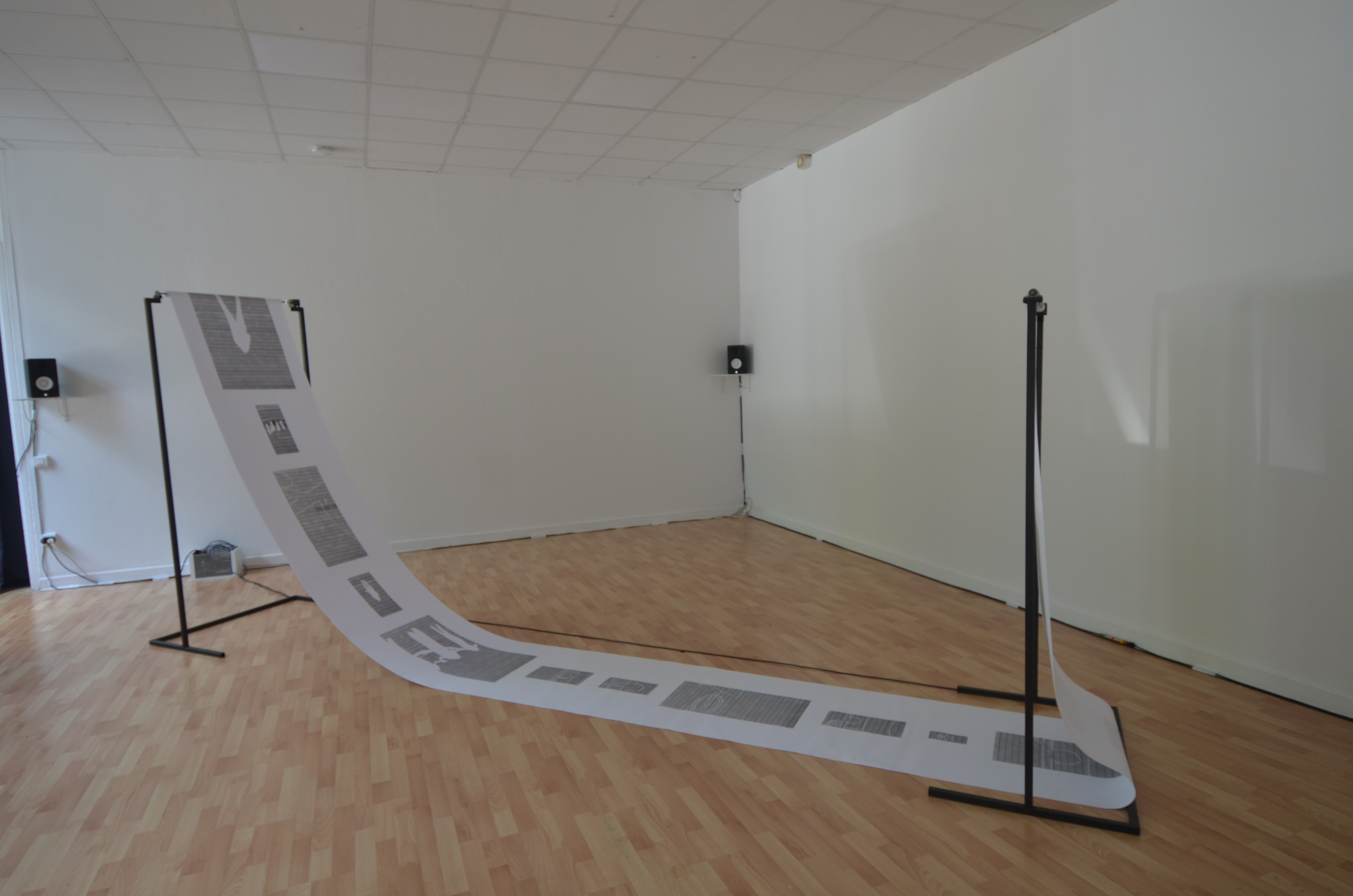 Cette structure motorisée déroule un rouleau de papier sur lequel figurent des estampes qui apparaissent successivement, comme sur notre feed (fil d’actualité) Facebook ou Instagram. De l’autre côté, le papier est enroulé, représentant ainsi l’archivage et la rapidité du changement de l’intérêt sur les réseaux sociaux.